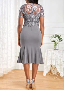 Timeless Elegance – Black Lace Short A-Line V-Neck Dress at a Great Price!