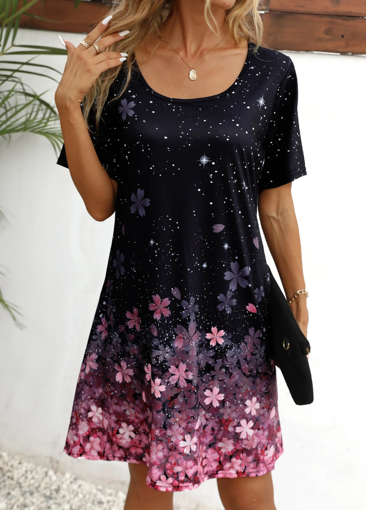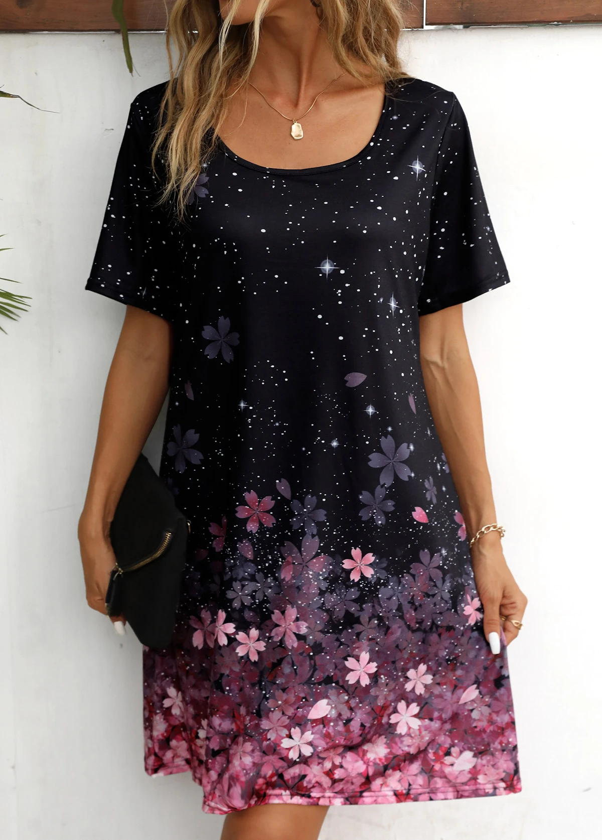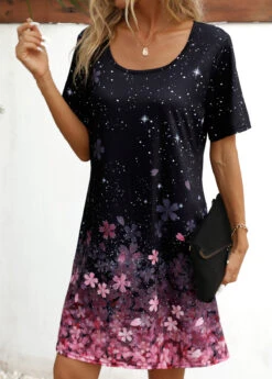 Black Floral Print Shift Dress