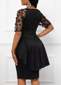 Black Patchwork Half Sleeve Round Neck Bodycon Dress