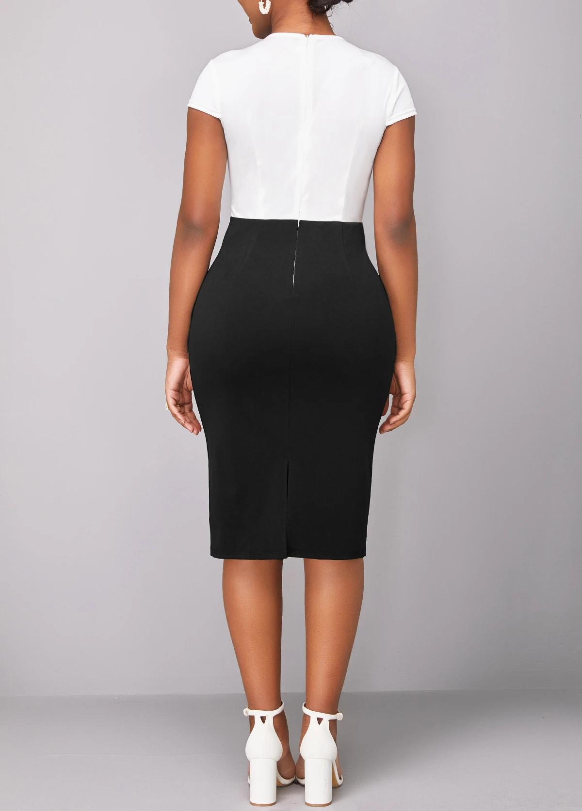 Black Twist Cap Sleeve V Neck Bodycon Dress
