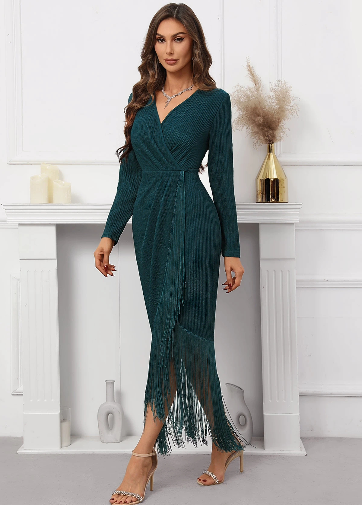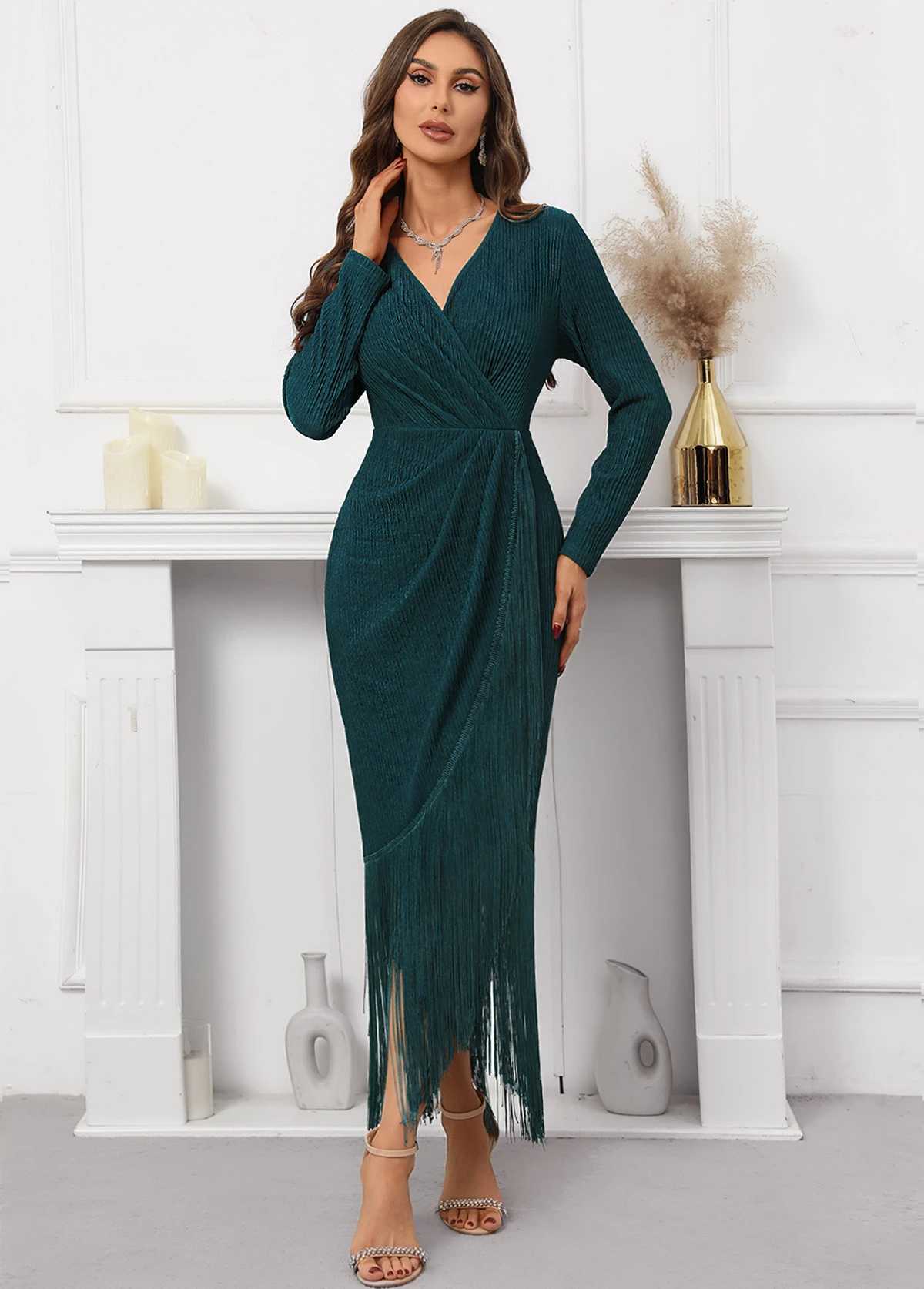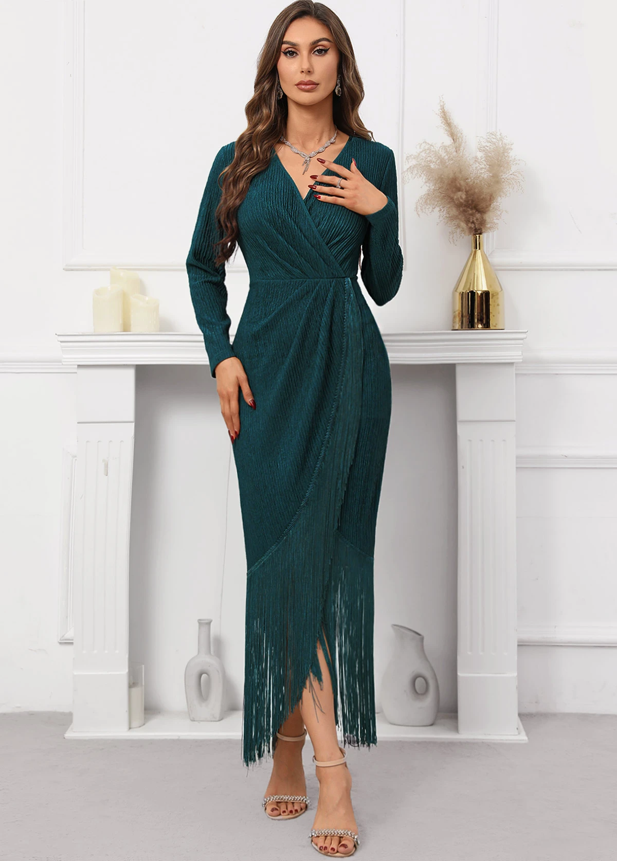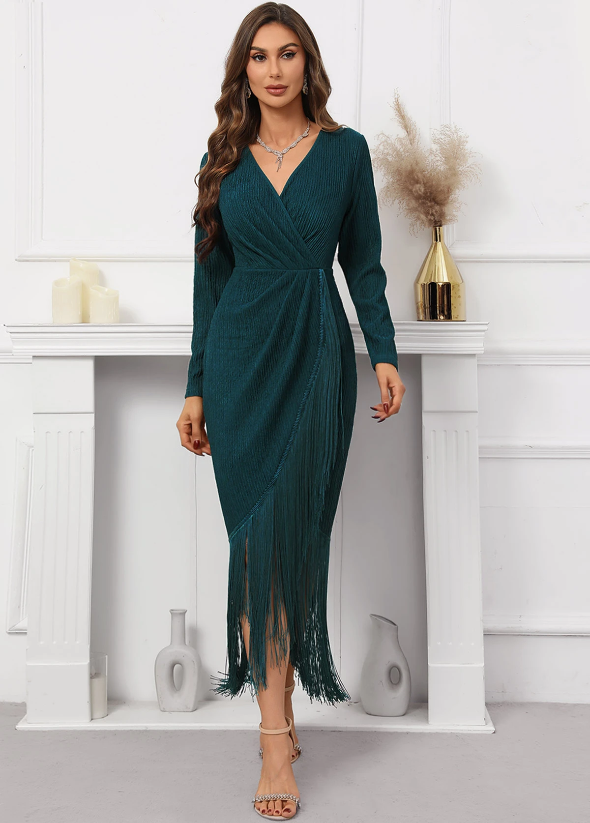 Be the first to review “Blackish Green Tassel Long Sleeve Dress” Cancel reply