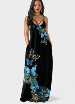 Be the first to review “Butterfly Print Spaghetti Strap Black Dress” Cancel reply