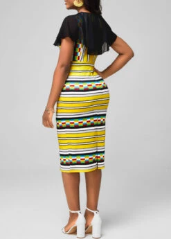 Chiffon Panel Multi Color Striped Bodycon Dress