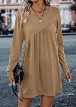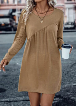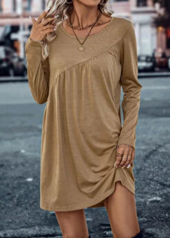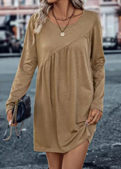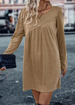 Dark Camel Ruched Short Shift Dress