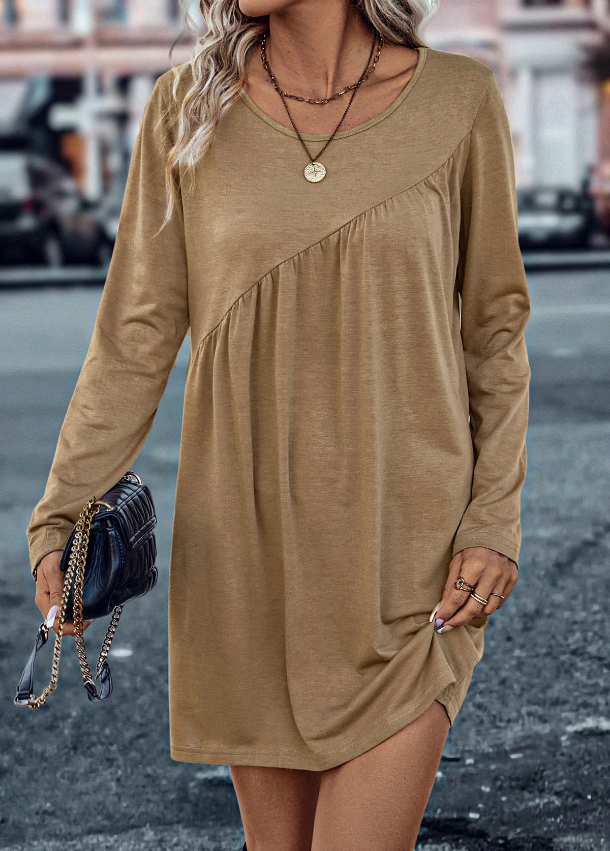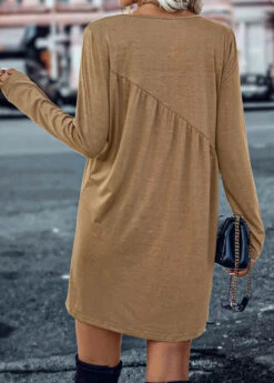 Be the first to review “Dark Camel Ruched Short Shift Dress” Cancel reply