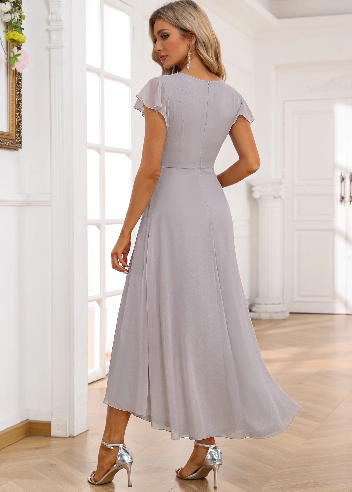 Light Grey Twist Short Sleeve V Neck Dress