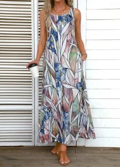 Multi Color Leaf Print Maxi Dress