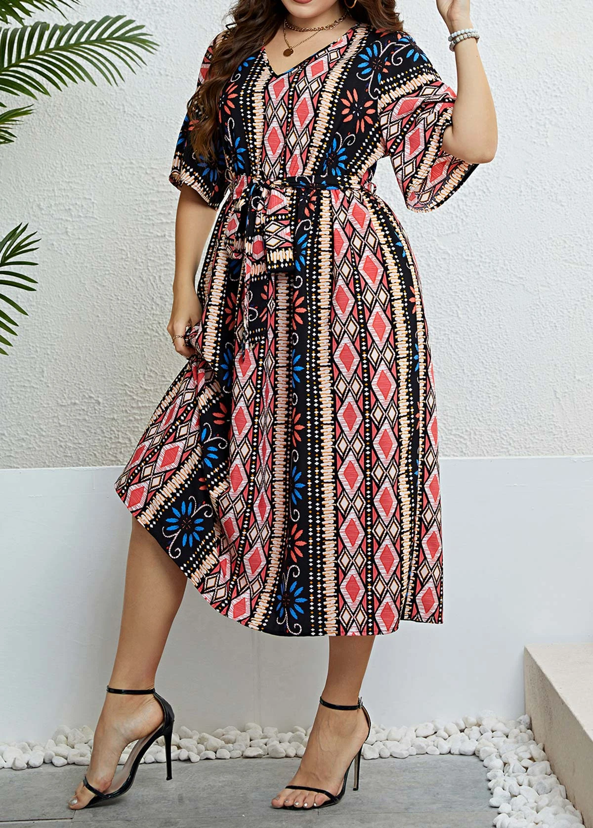 Be the first to review “Multi Color Tie Plus Size Belted Dress” Cancel reply