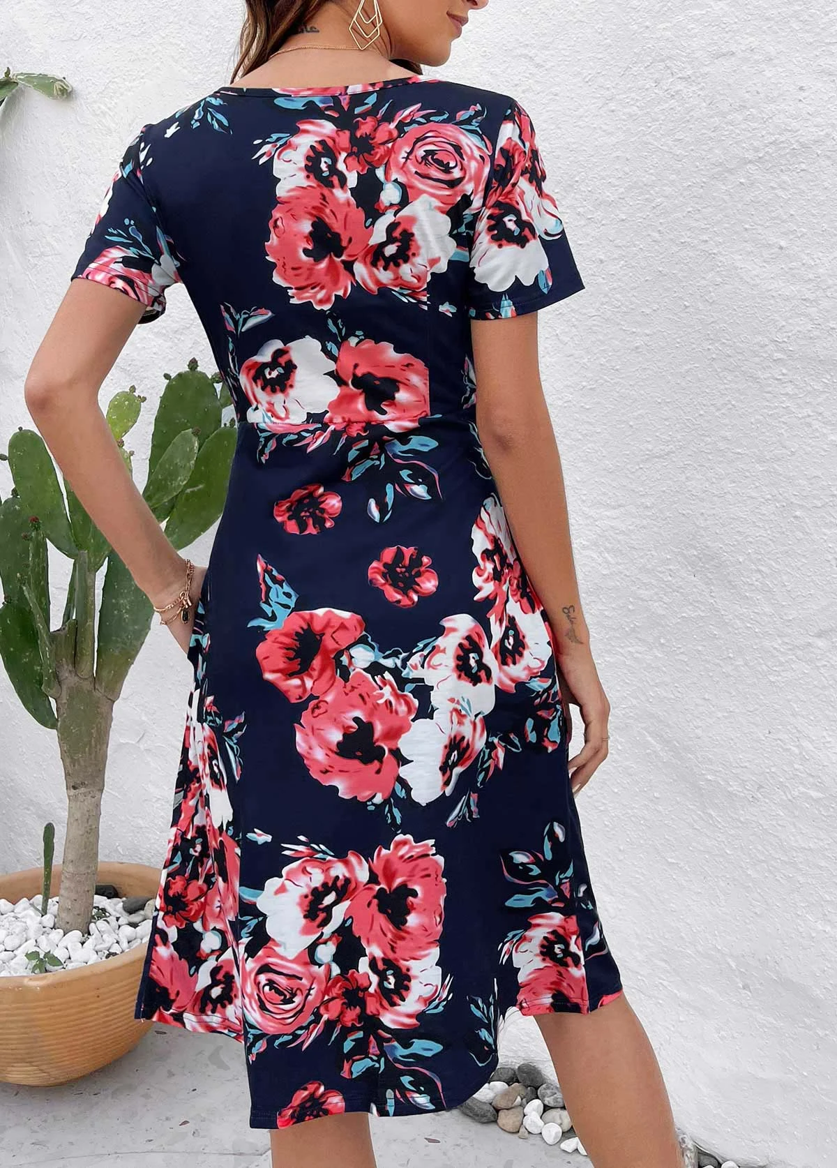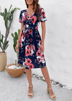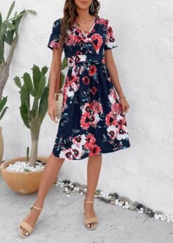 Be the first to review “Navy Patchwork Floral Print Short Sleeve Dress” Cancel reply