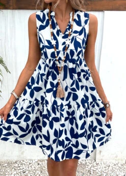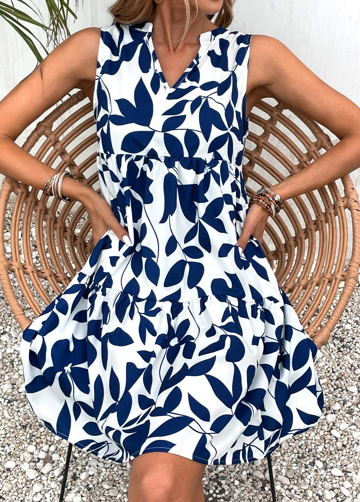 Be the first to review “Navy Ruched Leaf Print A Line Dress” Cancel reply