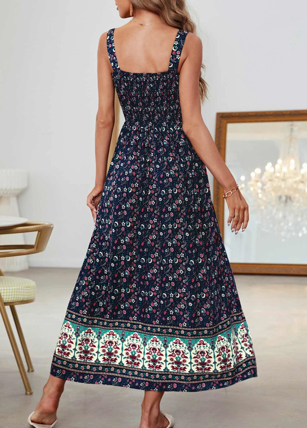 Be the first to review “Navy Smocked Ditsy Floral Print Strappy Dress” Cancel reply