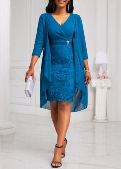 Peacock Blue Lace Two-Piece Dress And Cardigan