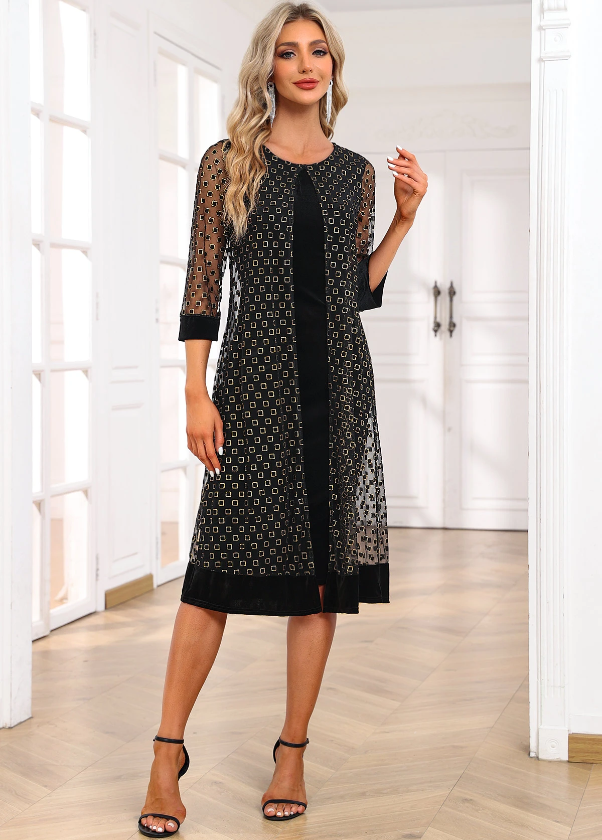 Be the first to review “Round Neck Black Fake 2in1 Shift Dress” Cancel reply