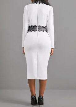 White Lace Patchwork Long Sleeve Dress